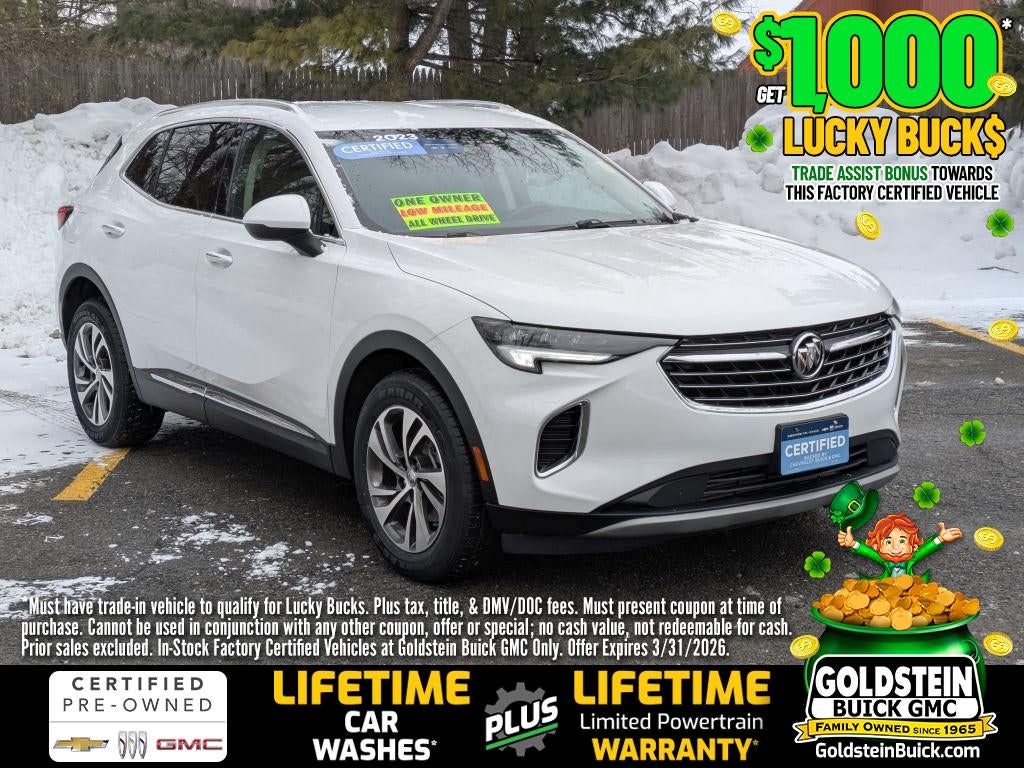 **ONE OWNER** **4X4/AWD** **LEATHER SEATING** **HEATED SEATS** **CLEAN AUTOCHECK** **GM CERTIFIED** This vehicle includes the Goldstein Exclusive Lifetime Limited Powertrain warranty and Lifetime Car Washes at no additional charge to you! This vehicle is available at Goldstein Buick GMC, 1671 Central Ave,Colonie NY. Call us at 518-869-2291 for more information Equipment Easily set your speed in this model with a state of the art cruise control system. Increase or decrease velocity with the touch of a button. The Electronic Stability Control will keep you on your intended path. This unit is equipped with a gasoline engine. The Buick Envision has a 4 Cyl, 2.0L high output engine. Bluetooth® technology is built into this model, keeping your hands on the steering wheel and your focus on the road. The Buick Envision's Lane Departure Warning helps keep you in your lane. The leather seats in the vehicle are a must for buyers looking for comfort, durability, and style. Lane Keep Assist in the vehicle helps maintain safe driving by gently steering to stay within the lane. This vehicle is pure luxury with a heated steering wheel. Keep safely connected while in the vehicle with OnStar. You may enjoy services like Automatic Crash Response, Navigation, Roadside Assistance and Hands-Free Calling. Load groceries and much more with ease into this 1/2 ton suv thanks to the power liftgate. Packages Envision Driver Confidence: Rear Cross Traffic Alert; Lane Change Alert with Side Blind Zone Alert; Buick Driver Confidence. Preferred Equipment Group 1SL. **Equipment listed is based on original vehicle build and subject to change. Please confirm the accuracy of the included equipment by calling the dealer prior to purchase.**