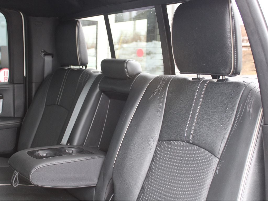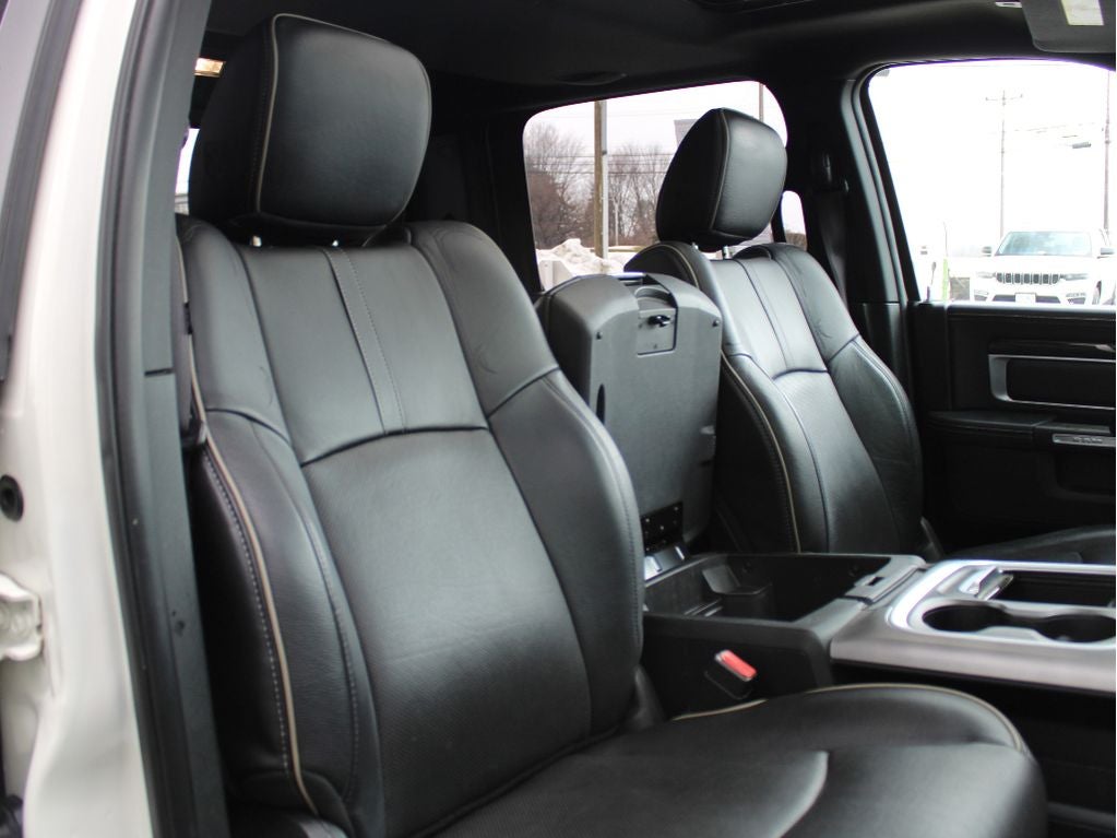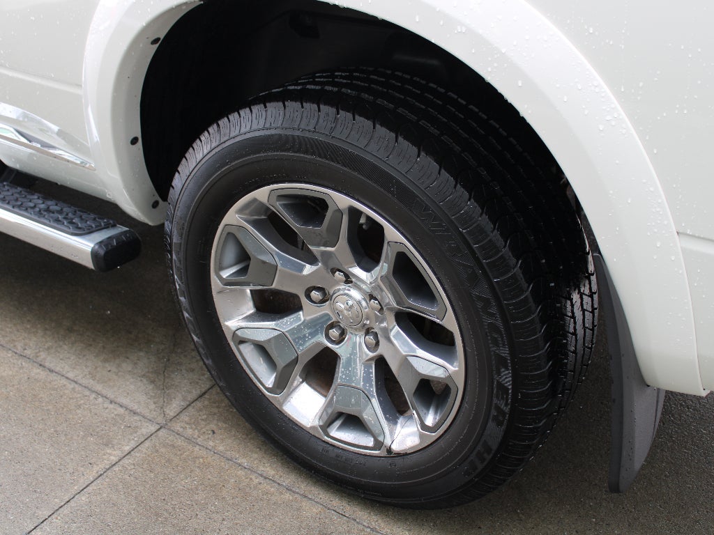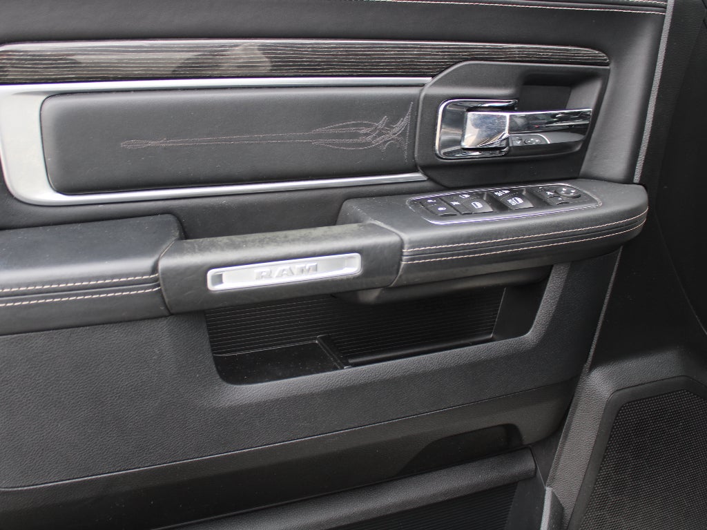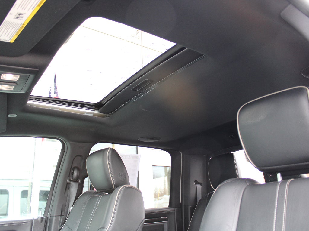 Quick Order Package 26V Limited: 4-Corner Air Suspension; Luxury Front and Rear Floor Mats; Rear Window Defroster; Chrome Bodyside Molding; Wood/leather Wrapped Steering Wheel; 20" X 9" Painted Aluminum Chrome Insert Wheels; Ram 1500 Badge; Chrome Ram Badge; Chrome Grille with RAM Letters; Leather Wrapped Grab Handle; Heated Second Row Seats; Heated Front Seats; Laramie Limited Leather Bucket Seats; Heated Steering Wheel; Body Color Front Fascia; Body Color Rear Bumper with Step Pads; Bucket Seats; Chrome Belt Moldings; High Back Seats; Rear 60/40 Split Folding Seat; Steering Wheel Mounted Audio Controls; Delete Tow Hooks; Laramie Limited Group; Ventilated Front Seats; Limited Tailgate Applique 4x4; Luxury Door Trim Panel; 115V Auxiliary Power Outlet; Center Hub; Folding Flat Load Floor Storage; Wheel to Wheel Side Steps; Laramie Limited Cluster; Black Closeout Trim; Power 10-Way Memory Driver and 6-Way Passenger Seats. Chrome Bumper Package: Bright Rear Bumper; Body Color Fender Flares; Bright Front Bumper. RamBox Cargo Management System. Power Sunroof. Trailer Brake Control. **Equipment listed is based on original vehicle build and subject to change. Please confirm the accuracy of the included equipment by calling the dealer prior to purchase.**