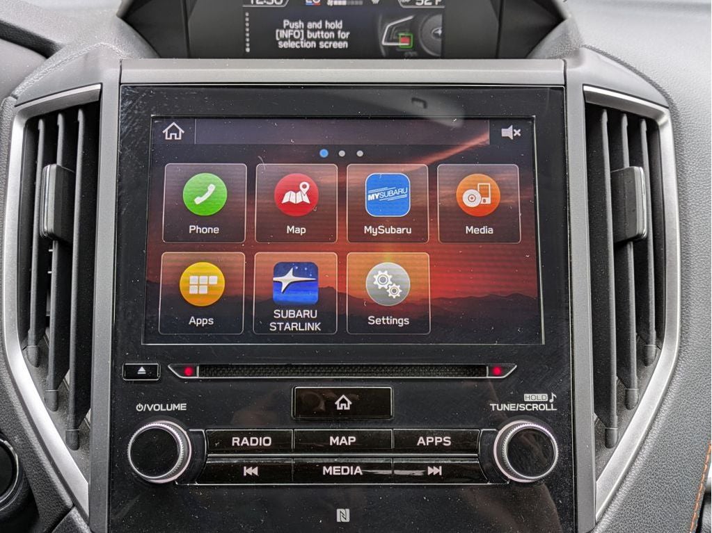 - Radio: Subaru Starlink 8.0" Multimedia Plus System -inc: AM/FM stereo HD Radio w/single disc CD player: CD player w/MP3/WMA/CRR/RW file capability, multi touch gesture high resolution display screen: 8.0" LCD, voice activated controls, Bluetooth audio streaming connectivity, Bluetooth hands-free phone and SMS text messaging connectivity (applicable w/compatible cell phone), Near Field Communication (NFC), iPod control capability, rear-vision camera display, SiriusXM All Access Radio and Travel Link (subscription required), 6 speakers, 3.5mm auxiliary input jack, dual USB ports and roof mounted audio and satellite antenna