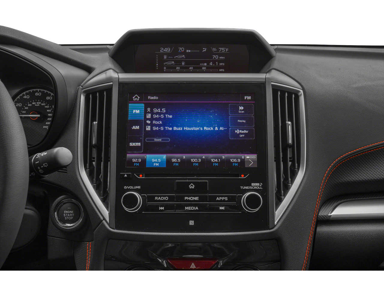 - Radio: Subaru Starlink 6.5" Multimedia Plus System -inc: AM/FM stereo HD Radio w/single-disc CD player w/MP3/WMA/CRR/RW file capability, multi-touch gesture high resolution display, 6.5" LCD screen, Bluetooth audio streaming connectivity and hands-free phone connectivity, iPod control capability, rear-vision camera display, SiriusXM All Access radio and Travel Link (subscription required), smartphone integration: AHA, Android Auto, CarPlay and Pandora, Starlink cloud applications: refer to subaru.com for app availability, dual USB port, 3.5mm auxiliary input jack, 6 speakers and body color roof mounted antenna