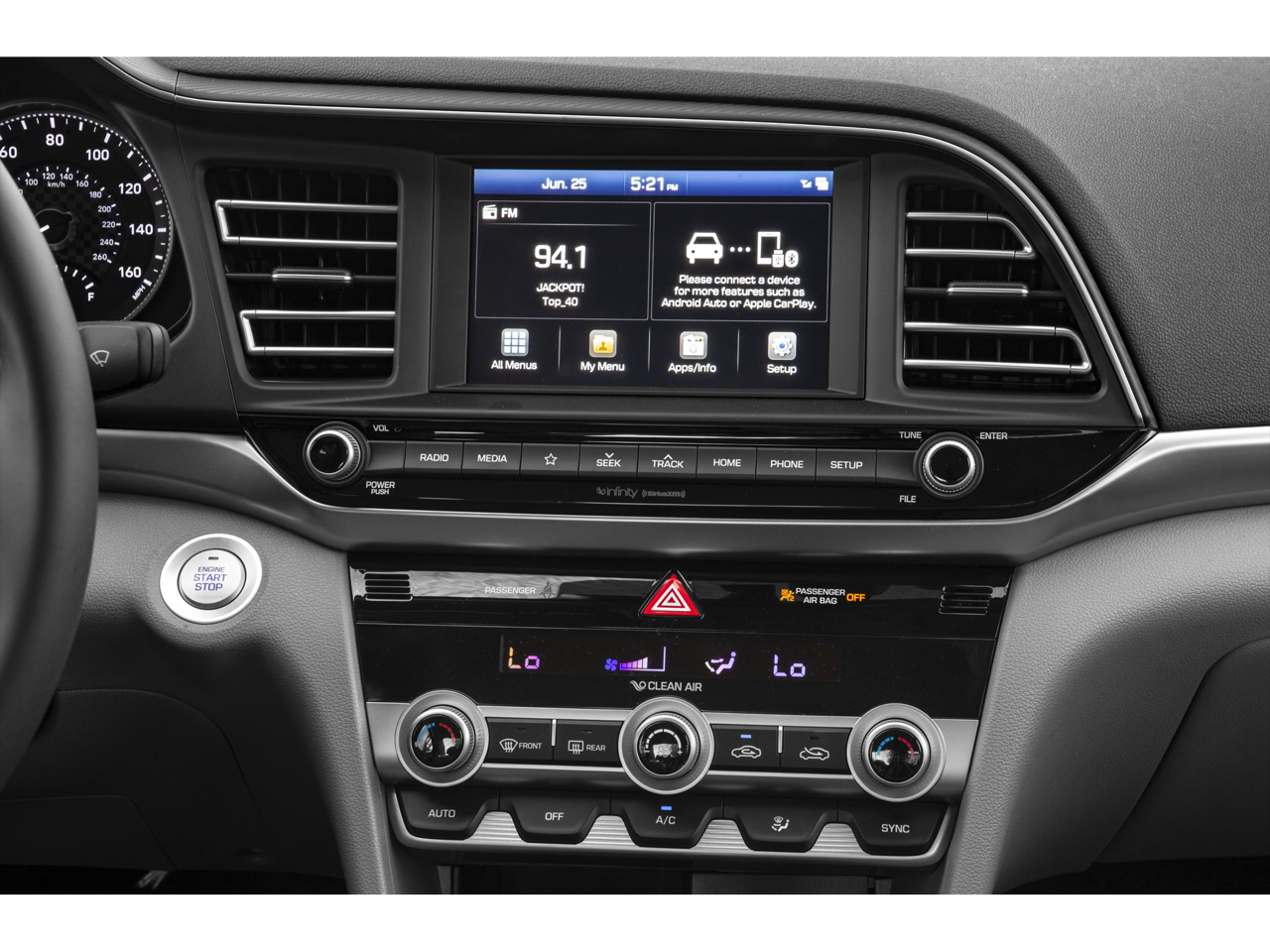 - Radio: AM/FM/HD/SiriusXM Infinity Premium Audio -inc: 7-inch high resolution touchscreen, 8 speakers including center channel and subwoofer, Clari-fi music restoration technology, Blue Link connected car care system w/3-year Blue Link connected care & remote package complimentary trial, Apple CarPlay & Android Auto, Bluetooth hands-free phone system w/voice recognition and audio streaming, iPod/USB/MP3 auxiliary input jacks w/dual USB charging, wireless charging pad (Qi standard) and speed-sensitive automatic volume control
