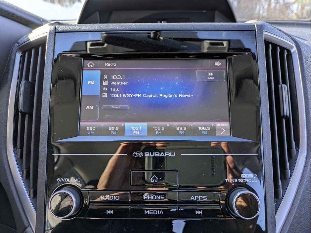 - Radio: Subaru STARLINK 6.5" Multimedia System -inc: AM/FM stereo, multi-touch gesture high resolution display screen, voice activated controls, Bluetooth audio streaming and hands-free phone connectivity, Bluetooth hands-free SMS text messaging connectivity, iPod control capability, rear-vision camera display, smartphone integration: AHA, Android Auto, Apple CarPlay, Pandora, STARLINK cloud applications, 4 speakers, 3.5mm auxiliary input jack, USB A input charge port and roof mounted antenna