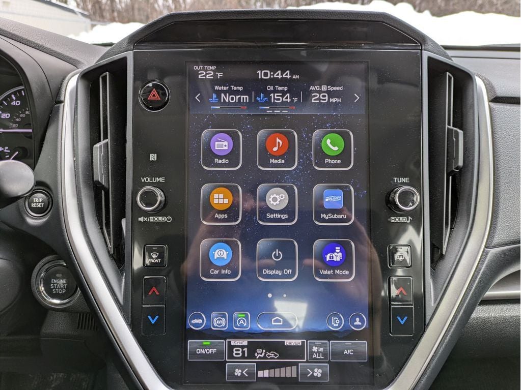 - Radio: Subaru STARLINK 11.6" Multimedia Plus Sys -inc: valet mode, AM/FM stereo, HD Radio, multi-touch gesture high resolution display screen, voice activated controls, Bluetooth audio streaming and hands-free phone connectivity, Bluetooth hands-free SMS text messaging connectivity, iPod control capability, rear-vision camera display, SiriusXM All Access radio (4 months free trial/subscription required after), SiriusXM Travel Link (4 months free trial/subscription required after), smartphone integration: Android Auto, Apple CarPlay, STARLINK cloud applications, 6 speakers, 3.5mm auxiliary input jack, illuminated/dual USB A and C input charge ports, roof mounted antenna and audio/satellite connected services