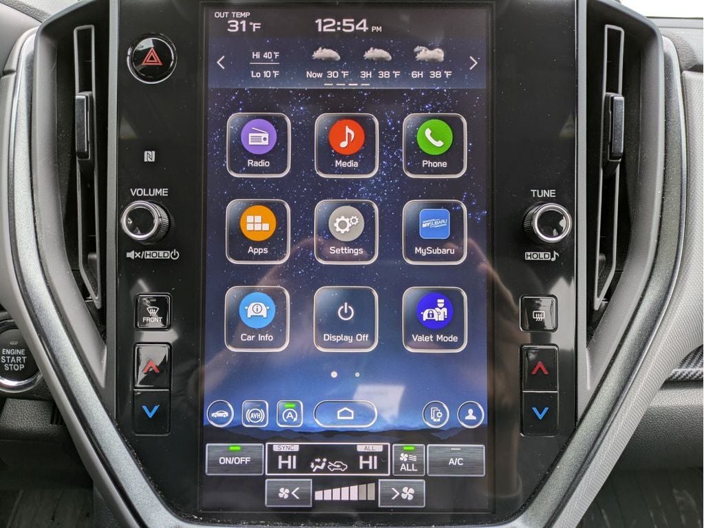 - Radio: Subaru 11.6" Multimedia Plus System -inc: AM/FM stereo, HD Radio, multi-touch gesture high resolution display screen, voice activated controls, Bluetooth audio streaming and hands-free phone connectivity, Bluetooth hands-free SMS text messaging connectivity, iPod control capability, SiriusXM w/360L (4 months free trial included/subscription required after), SiriusXM Travel Link (4 months free trial included/subscription required after), smartphone integration: Android Auto and Apple CarPlay w/full screen view and wireless connection, USB and Over The Air (OTA) audio system update, steering wheel audio system and Bluetooth control switches, 6 speakers (2 dash panel tweeter, 2 front door and 2 rear door), illuminated 3.5mm auxiliary input jack, illuminated front USB A and C input/charge ports and illuminated rear USB A and C charge ports